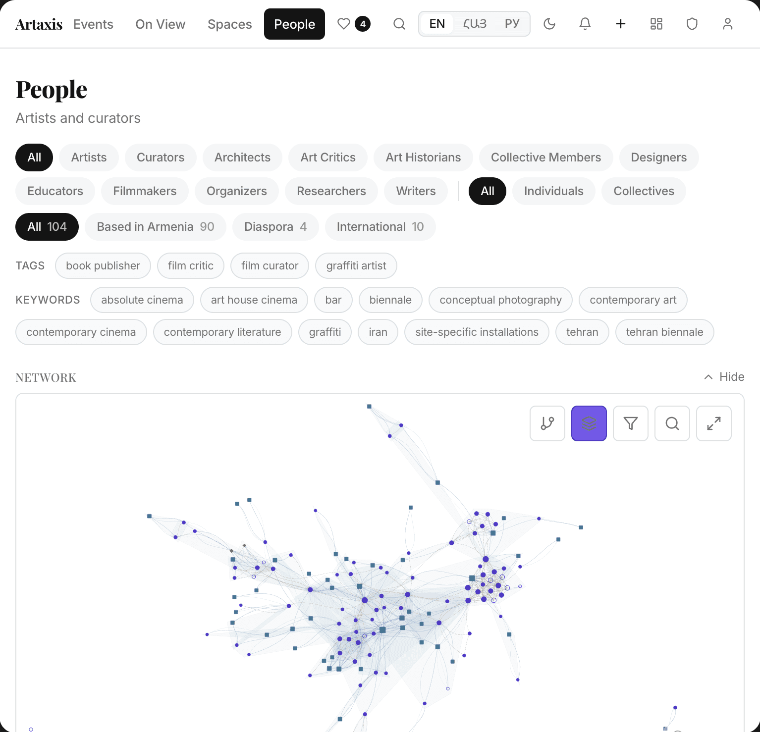 Joining forces with Taguhi, we are now taking a more structured approach. It was obvious from the start that the way to keep up with the community is to let the community tell its own news — announce events, document exhibitions, and self-archive. Art-axis is a community hub that hosts events, maps the organizations, and archives people’s efforts. I really want it to be a go-to for all things in Armenia's creative community. Now it’s still a long way to go; we have to figure out the basics and the infrastructure to make it convenient and resilient. But the initial response we are getting for the art-axis is giving us hope.