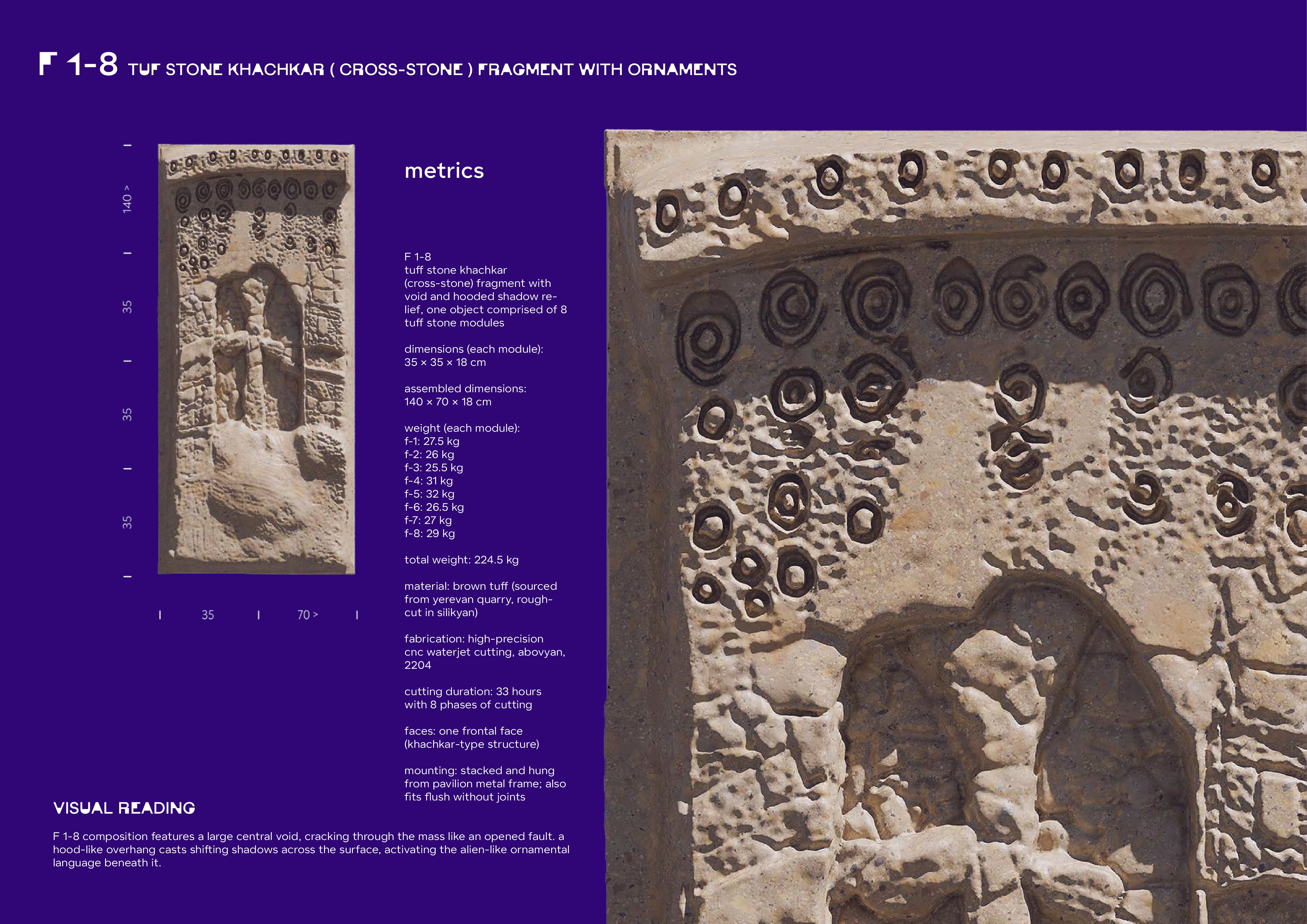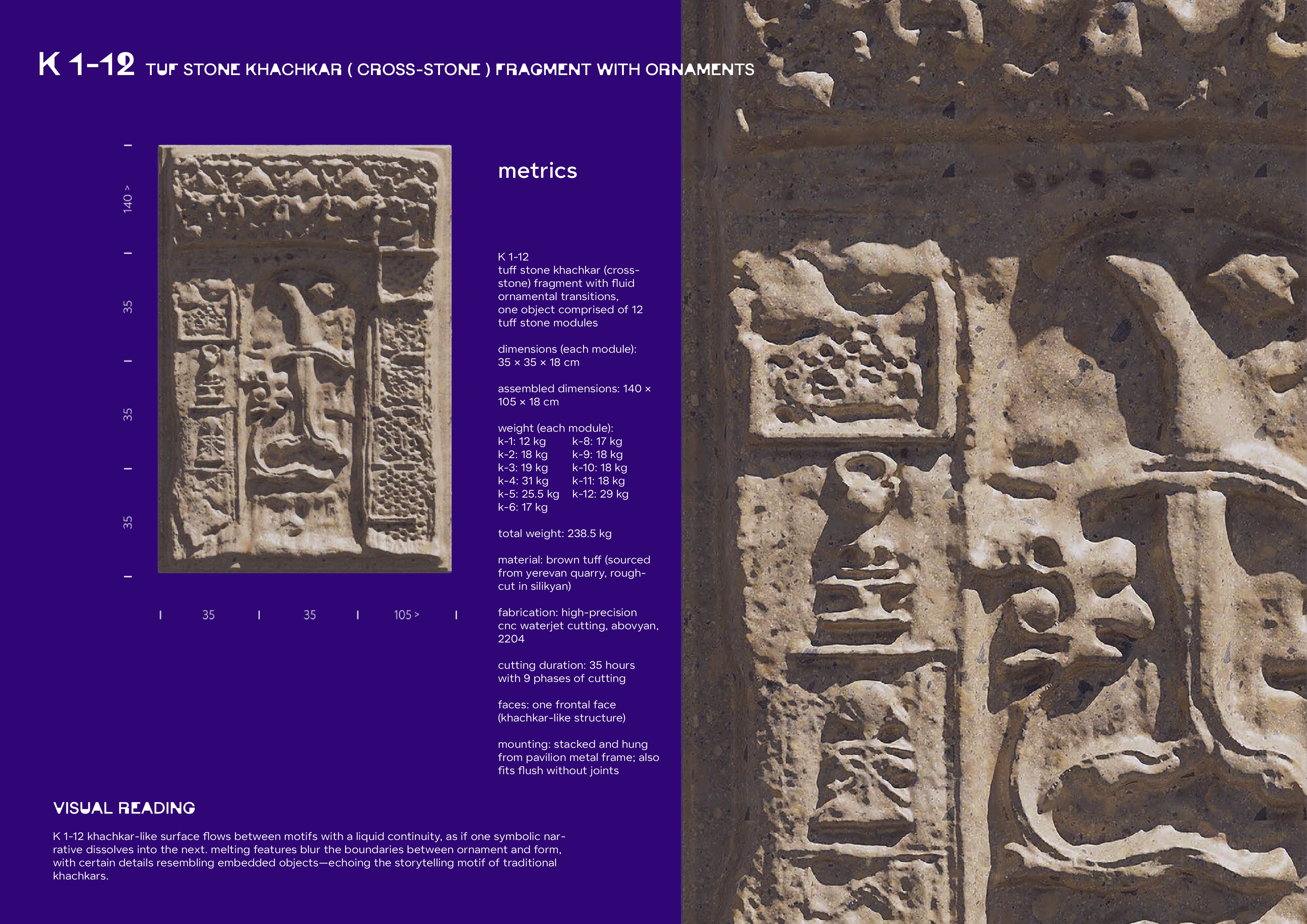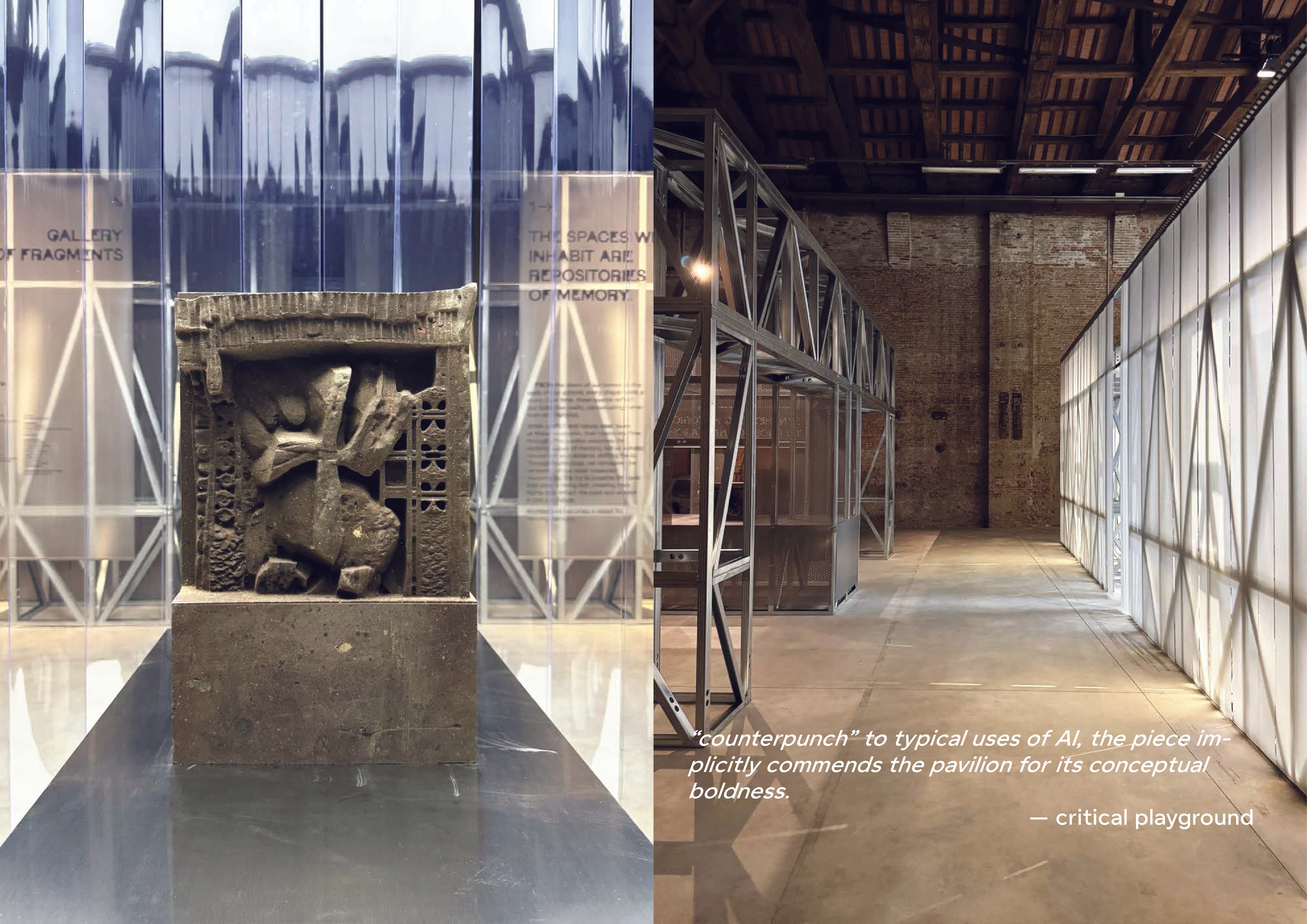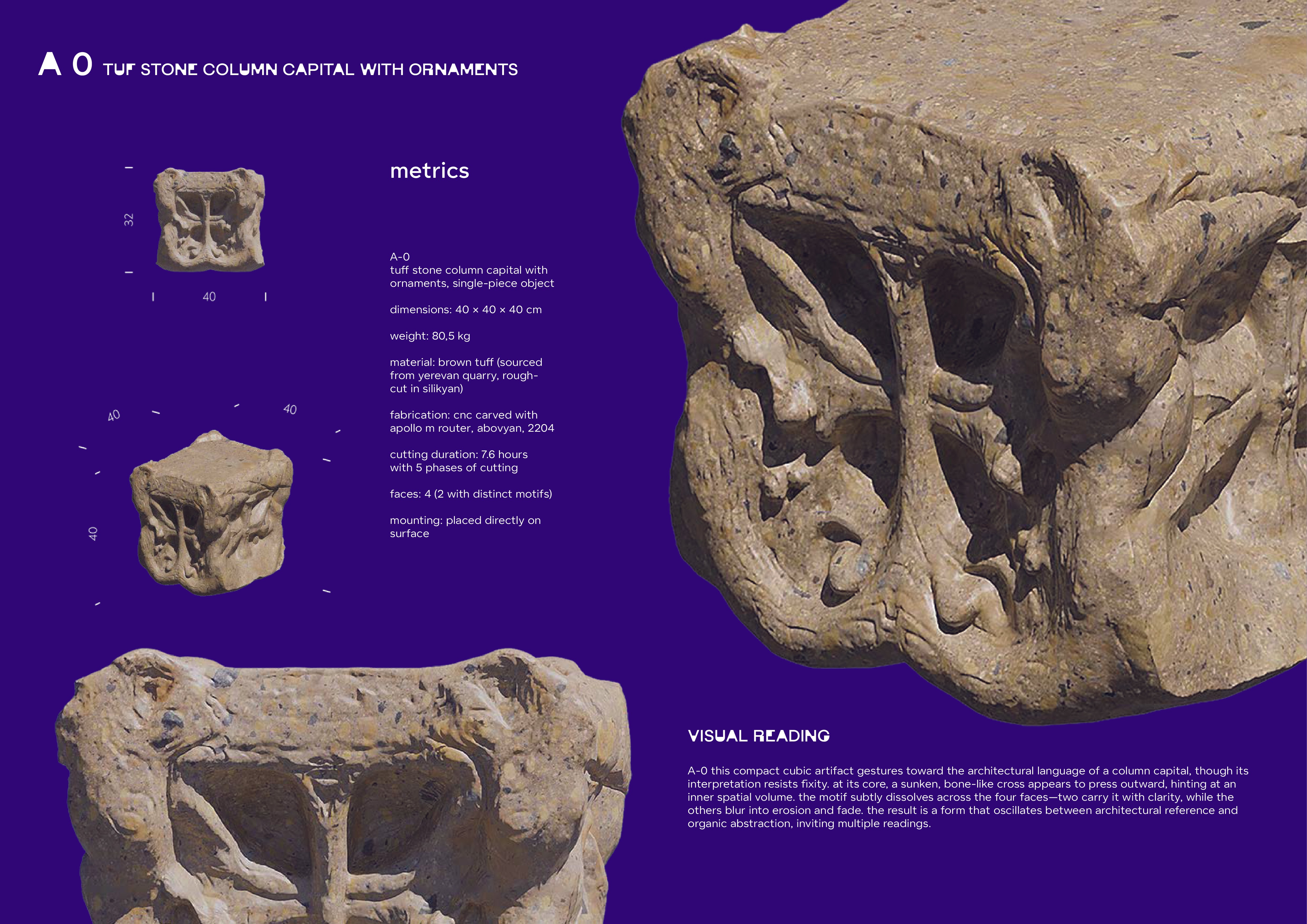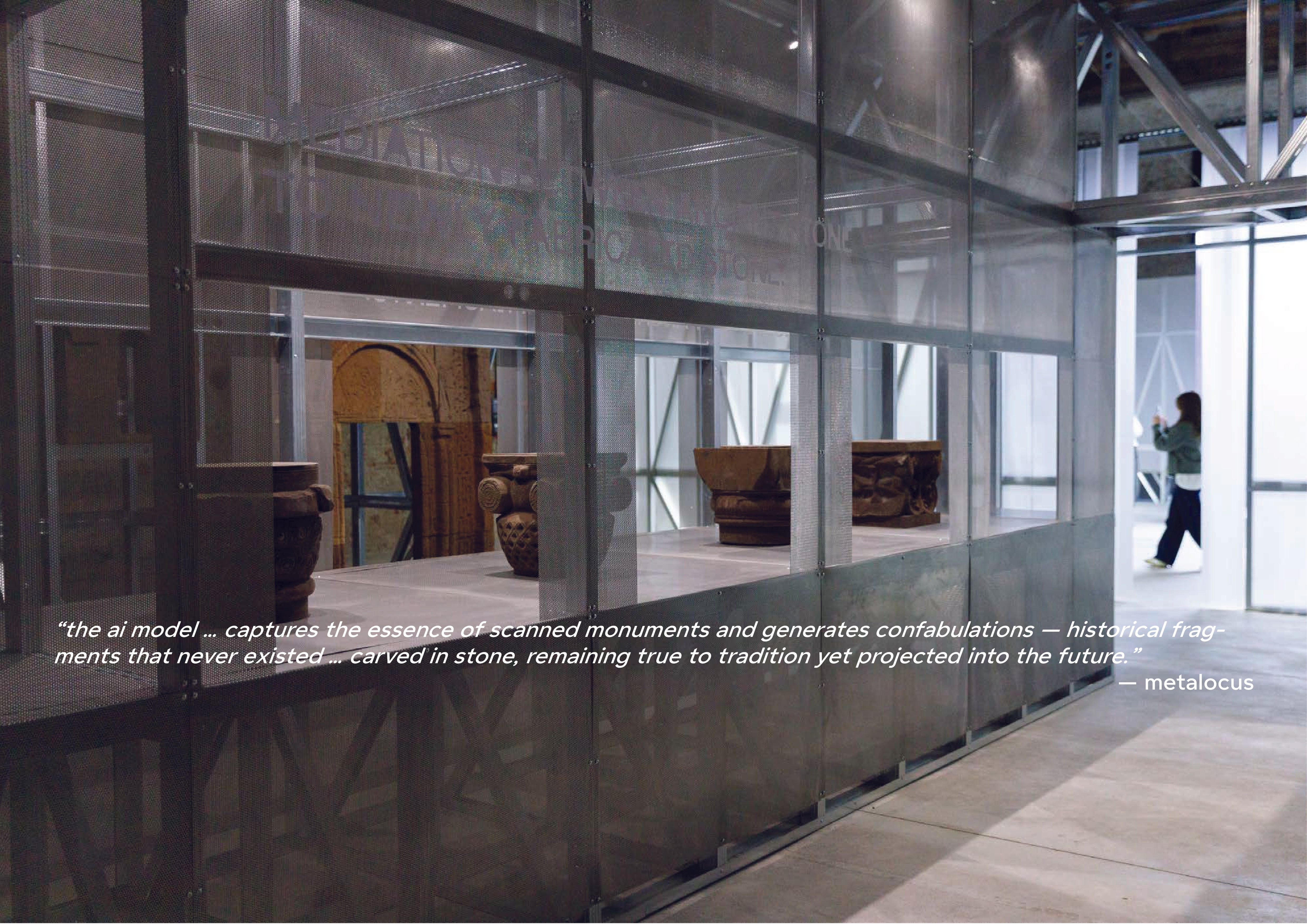 By training an AI model on digital renditions of ancient stone monuments and carving back into stone the often hallucinatory designs generated by the model, the Armenian Pavilion invites visitors to reconsider the role of memory in architecture and the challenge of preserving cultural heritage. The exhibition explores the ways in which technology can act as both a preserver and a disruptor of tradition, challenging conventional restoration methods and proposing a new, adaptive approach to heritage preservation.