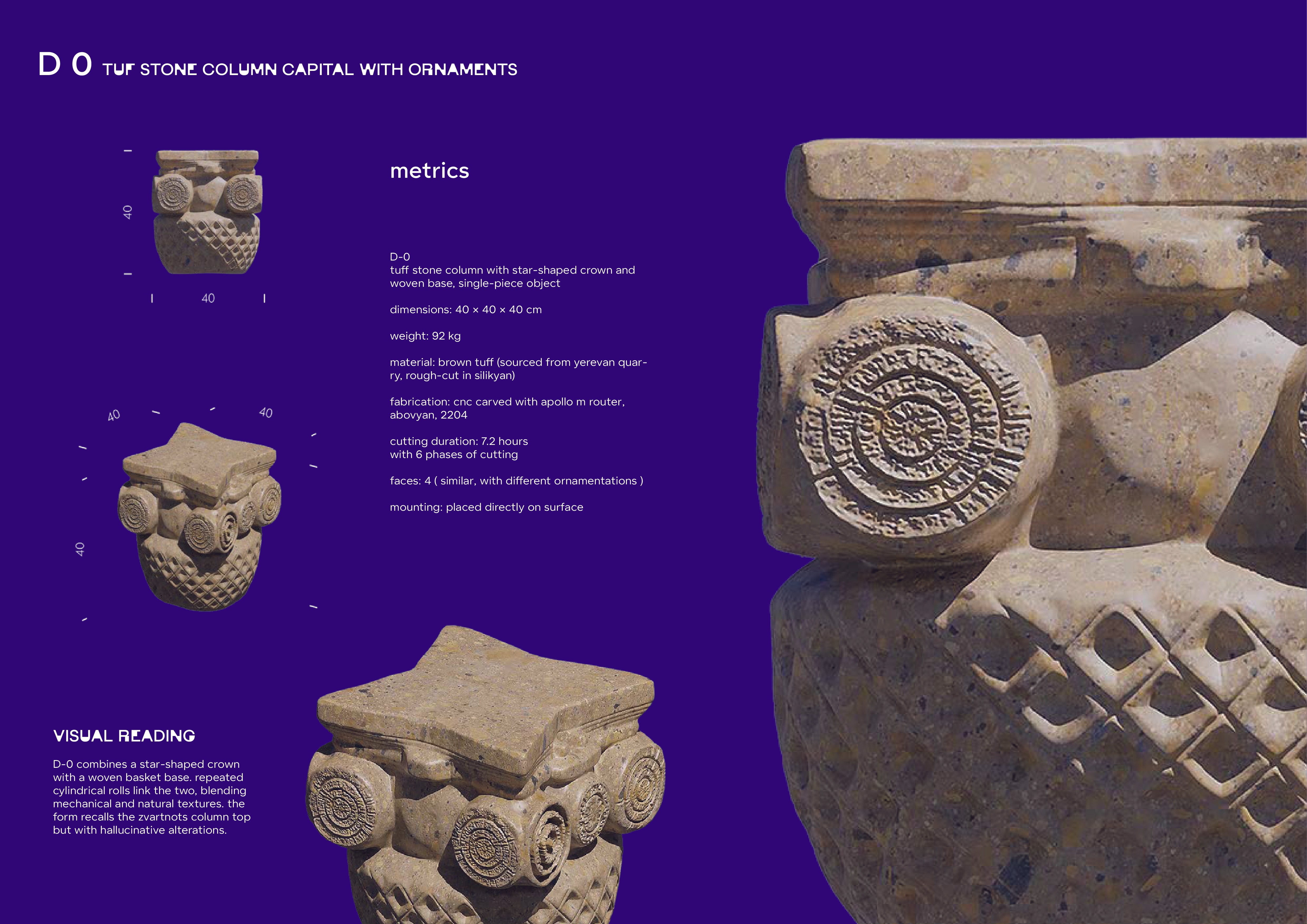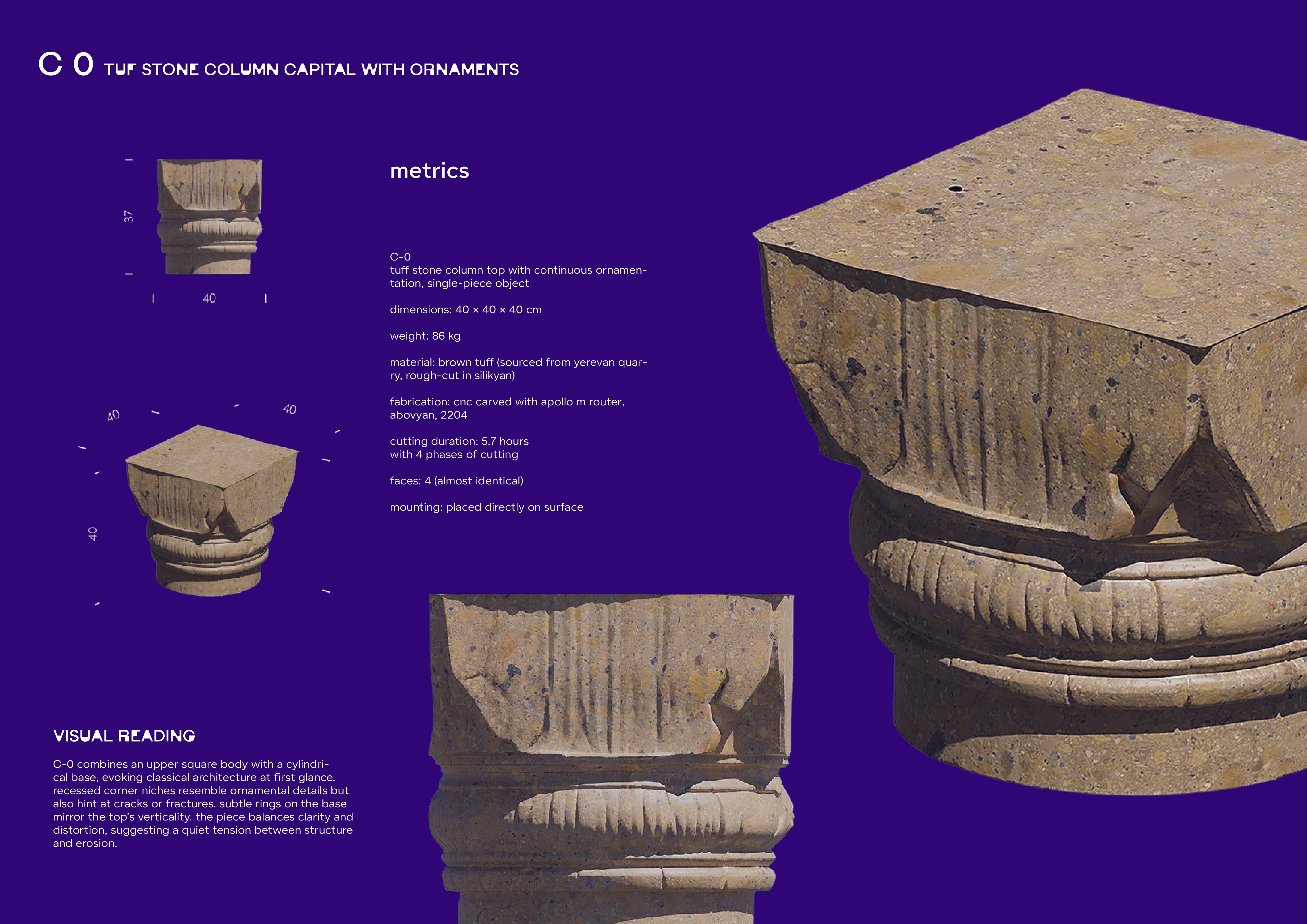 By carving speculative, machine-generated forms into stone, the project highlights the dynamic tension between tradition and design. It raises profound questions about authorship in architecture: Is AI merely a tool for human creativity, or does it assert itself as a creative agent in the process of generating form? What happens when we step back and let the machine reinterpret historical motifs on its own terms? Microarchitecture Through AI invites visitors to grapple with these questions, presenting an architectural future and collective memory shaped by AI—encouraging reflection on how technology might reimagine the past and transform the future of design.