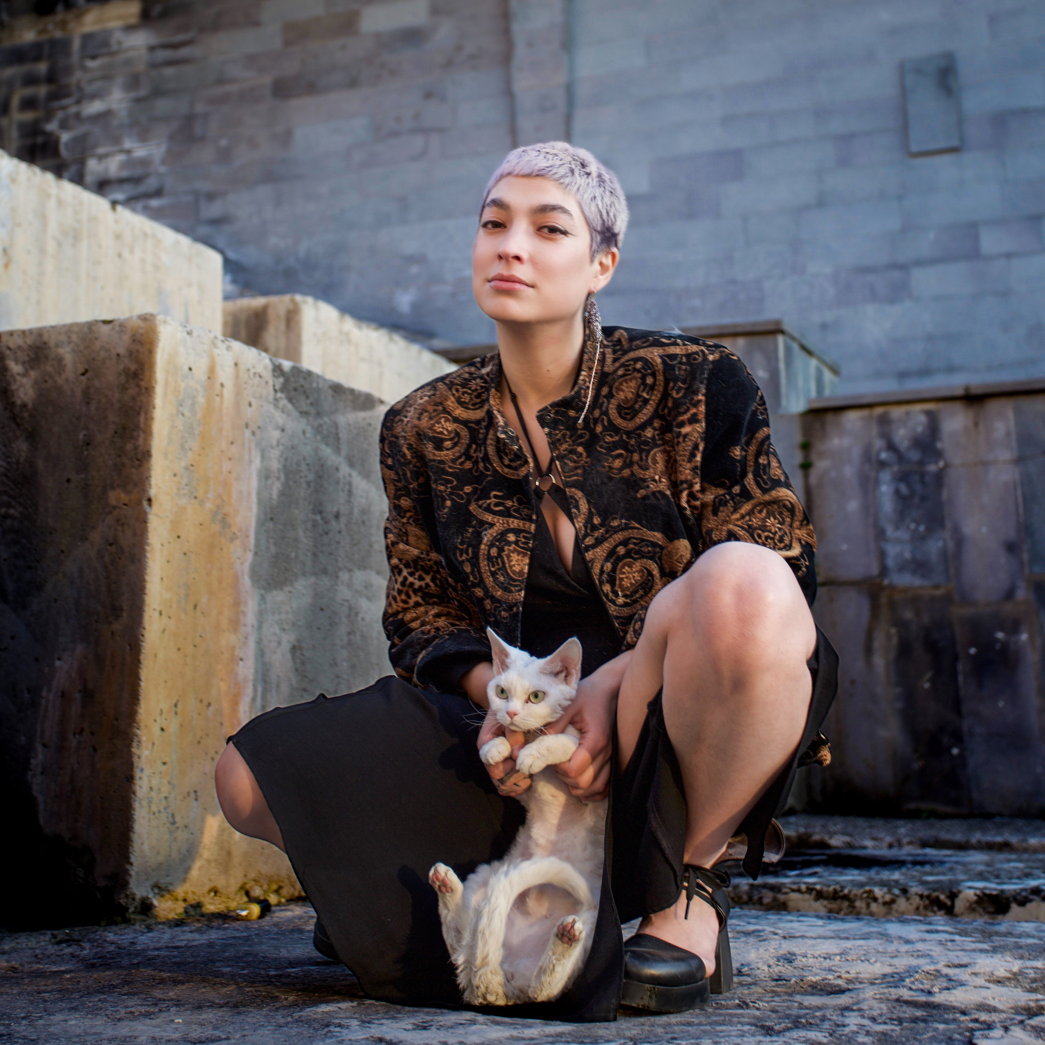 Hi, I'm Anna at home, "Glaz" (inspired by a character from the book To Kill a Mockingbird—a little character who dressed like a boy) to my old and gold homies, and "Kamunts" on stage ("Քամունց" is derived from my old last name, meaning "from the wind." My father shared a legend about it, and he once dreamed of changing our last name to embrace this heritage). I'm also the mommy of two girl kitties. What's weird is that I have so many names, but they don't; they're just "pss pss." So, I'm not good with names—call me whatever you want. I'm always happy to discover something new about myself.