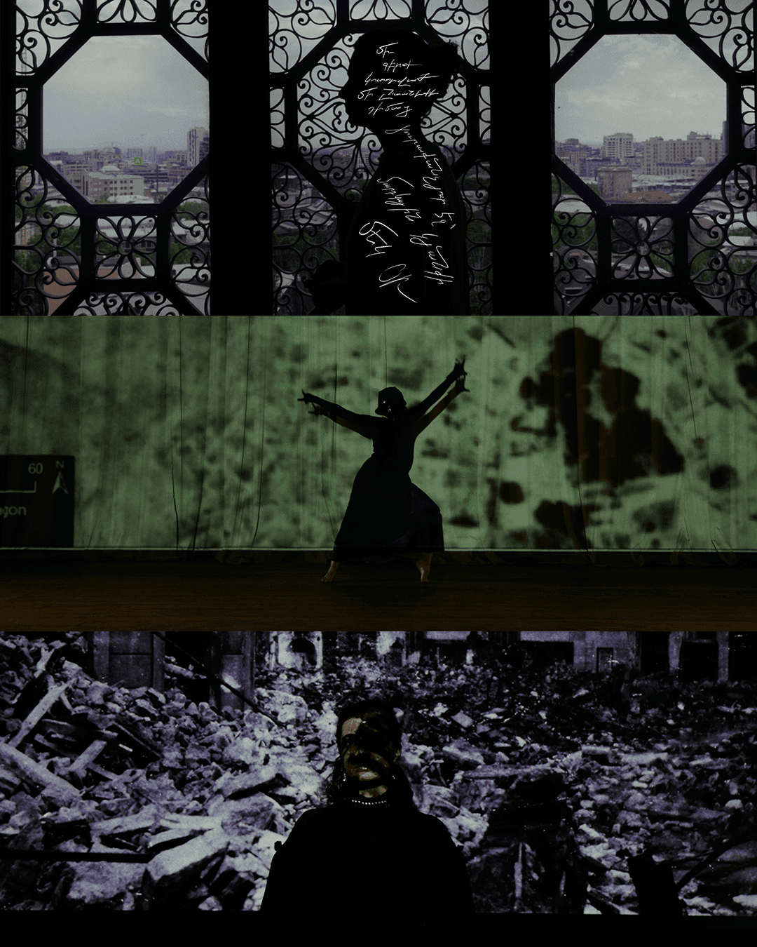 She speaks with the audience with her neat handwriting, contemplative gaze, free-verse poem lines, old photographs, and the satellite images of hundreds of Armenian churches, desecrated during the Genocide.